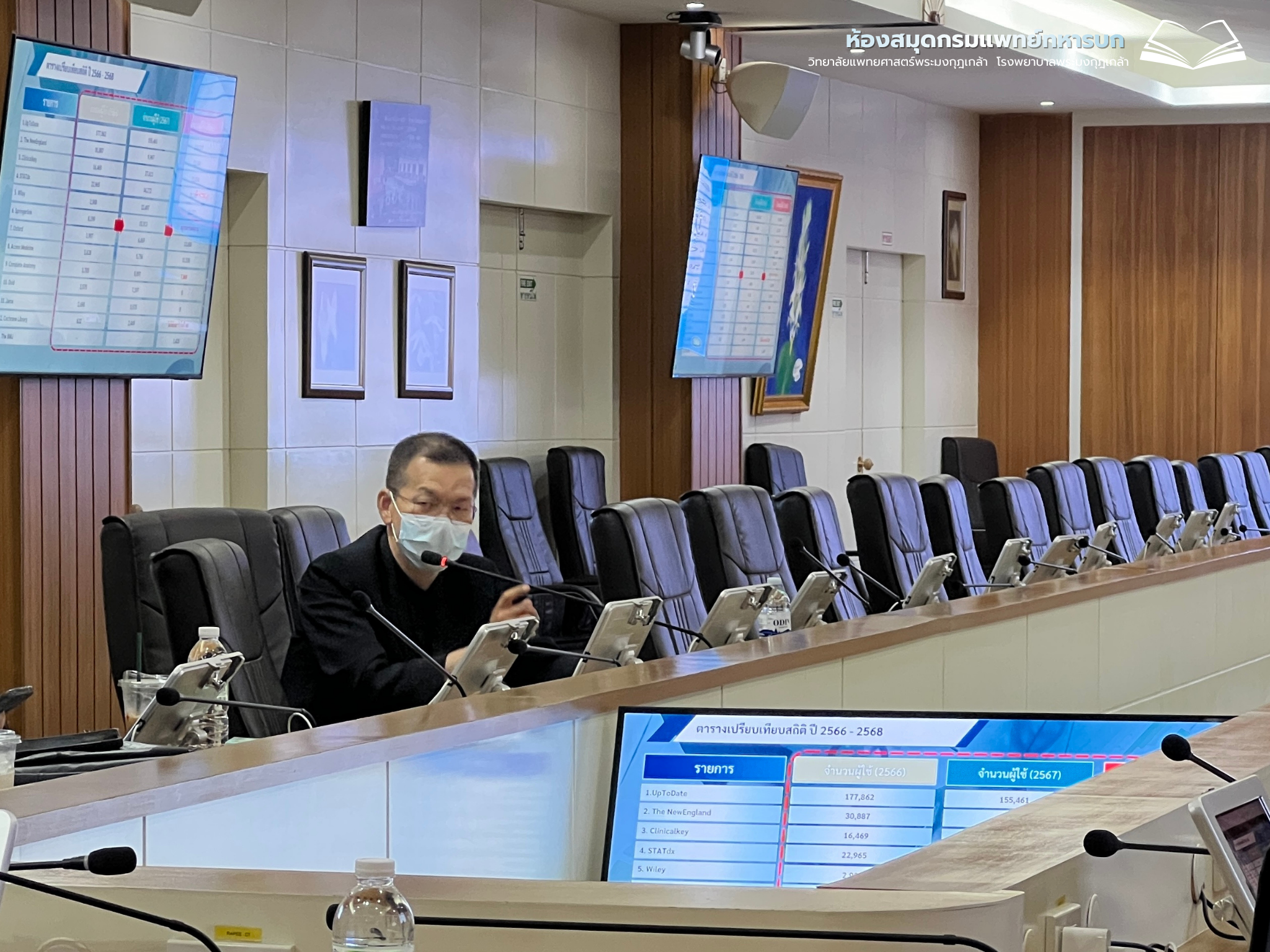 เมื่อวันที่ 4 กรกฎาคม 2567 พันโทหญิงสุภัทราภรณ์ กุลภา หัวหน้าแผนกห้องสมุด กองวิทยาการ กรมแพทย์ทหารบก แนะนำการใช้งานฐานข้อมูลห้องสมุด ให้แก่ นักเรียนแพทย์ทหาร
